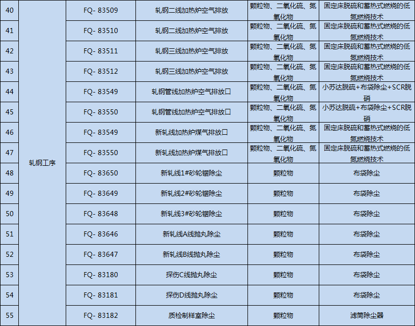 巨能特鋼在55個在用有組織廢氣排放口,均按超低排放要求配套了除塵、脫硫、脫硝等污染物治理設施進行規(guī)范化改造,進行有組織排放污染防治。