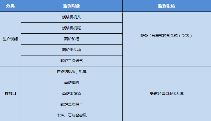 為了保證主要廢氣治理設施正常運行,污染物穩(wěn)定達標排放,巨能特鋼在燒結機機頭、燒結機機尾、高爐礦槽、高爐出鐵場、轉爐二次煙氣、電爐、石灰窯等主體生產設施配備了分布式控制系統(tǒng)(DCS);在燒結機頭、機尾、高爐供料、高爐出鐵場、轉爐二次除塵、電爐、石灰窯窯尾等主要排放口共安裝了14套CEMS系統(tǒng),實時監(jiān)控環(huán)保設施運行和污染物排放情況。