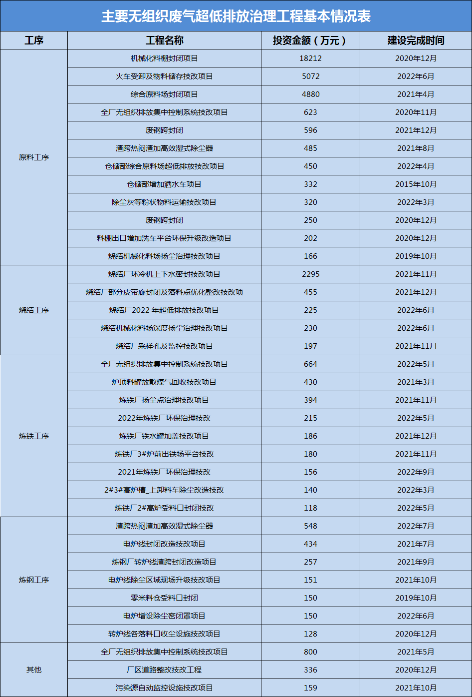 對物料儲存、物料輸送、生產工藝等方面進行了全面梳理,建立全廠無組織排放清單,并對不符合要求的無組織排放源進行粉塵治理技術升級改造。