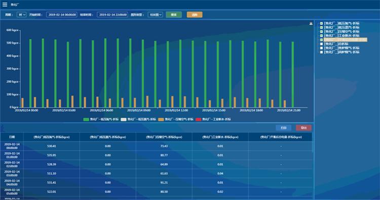 通過能源管理系統(tǒng)的計劃過程、平衡預(yù)測、各主要工序的能源生產(chǎn)和消耗情況的監(jiān)控與分析,實現(xiàn)了能源的工序成本核算,將企業(yè)各工序、設(shè)備的用能成本進行分類,將用能轉(zhuǎn)換為實際成本,建立客觀的以數(shù)據(jù)為依據(jù)的能源成本消耗評價體系。