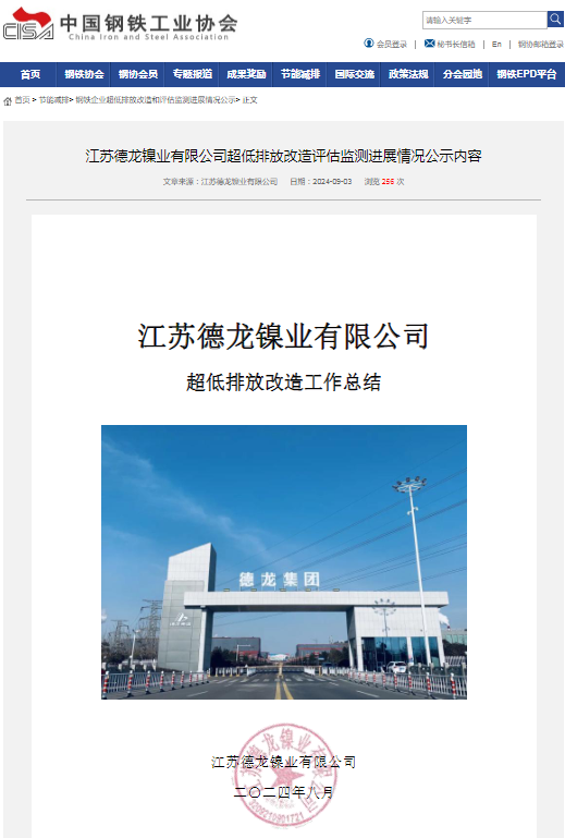 9月3日,中國(guó)鋼鐵工業(yè)協(xié)會(huì)官網(wǎng)正式公示了江蘇德龍鎳業(yè)有限公司(以下簡(jiǎn)稱“德龍鎳業(yè)”)全流程超低排放改造評(píng)估監(jiān)測(cè)進(jìn)展情況。
