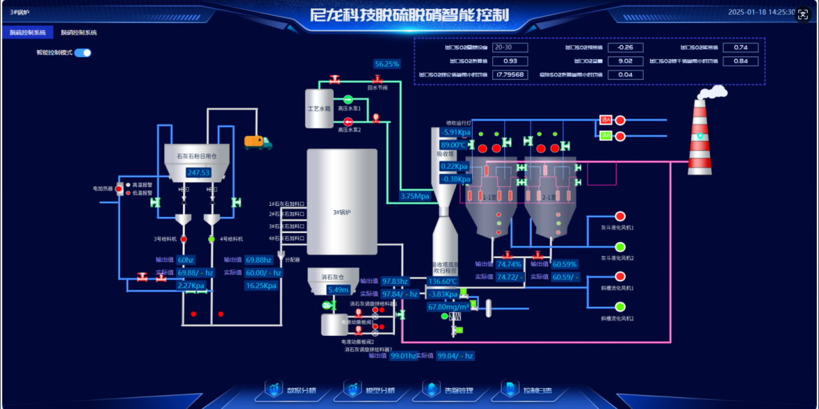 在環(huán)保要求日益嚴(yán)格的今天,脫硫脫硝系統(tǒng)的穩(wěn)定運行和精準(zhǔn)控制成為企業(yè)綠色發(fā)展的關(guān)鍵。然而,傳統(tǒng)控制方式在面對復(fù)雜工況、多變量耦合和大時滯等問題時,往往力不從心。如何實現(xiàn)高效、經(jīng)濟(jì)、安全的污染物控制?九九智能環(huán)保自主研發(fā)工業(yè)源煙氣脫硫脫硝及氨逃逸AI精準(zhǔn)控制系統(tǒng),幫助企業(yè)構(gòu)建“監(jiān)測-預(yù)測-優(yōu)化-控制”智能管理體系,助力企業(yè)減污降碳,綠色轉(zhuǎn)型。