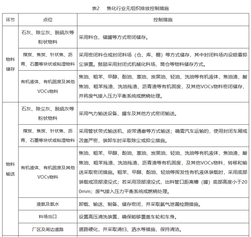 物料儲(chǔ)存、物料輸送、生產(chǎn)工藝過程、敞開液面(焦化)等無組織排放源,在保障安全生產(chǎn)的前提下,采取密閉、封閉等有效控制設(shè)施。無組織排放控制設(shè)施與生產(chǎn)設(shè)施同步正常運(yùn)行,產(chǎn)塵點(diǎn)及生產(chǎn)設(shè)施無可見煙粉塵外逸,廠區(qū)整潔無積塵、無明顯異味。無組織排放控制具體要求見附件2。