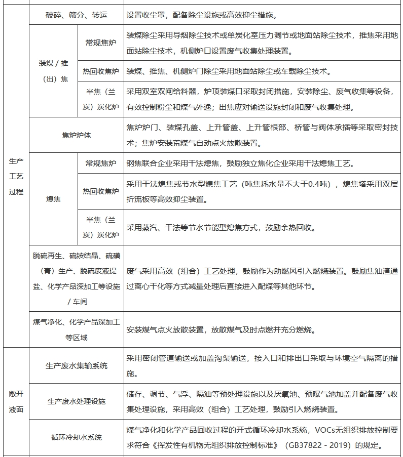 焦化企業(yè)焦?fàn)t采取正壓密封、磚縫灌漿、陶瓷焊補(bǔ)等源頭控制措施減少爐墻串漏。各類儲(chǔ)罐(槽、池)以及有機(jī)液體裝載點(diǎn)位收集的高濃度揮發(fā)性有機(jī)物(VOCs)廢氣接入壓力平衡系統(tǒng)或燃燒處理;脫硫再生、硫銨結(jié)晶、硫磺(膏)生產(chǎn)、脫硫廢液提鹽、焦油渣干化、生產(chǎn)廢水處理、化學(xué)產(chǎn)品深加工等設(shè)施或車間收集的低濃度VOCs廢氣采用高效(組合)工藝處理,鼓勵(lì)引入燃燒裝置。半焦?fàn)t裝煤采取有效措施控制無組織逸散,采用蒸汽、干法等節(jié)能環(huán)保型熄焦方式,加強(qiáng)出焦輸送設(shè)施封閉和廢氣收集處理。