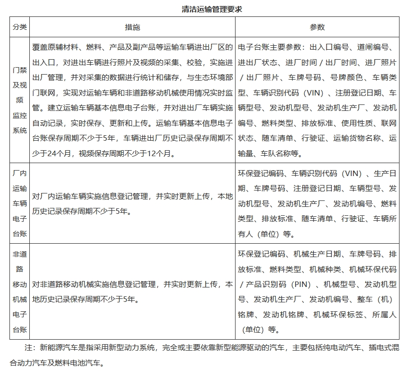 進(jìn)出水泥企業(yè)的原燃料、進(jìn)出焦化企業(yè)的物料和產(chǎn)品采用鐵路、水路、管道、管狀帶式輸送機(jī)、皮帶通廊等清潔方式運(yùn)輸比例不低于80%;達(dá)不到的企業(yè),汽車運(yùn)輸部分全部采用新能源或國六排放標(biāo)準(zhǔn)車輛。水泥行業(yè)產(chǎn)品運(yùn)輸優(yōu)先采用清潔運(yùn)輸方式,汽車運(yùn)輸全部采用新能源或國六排放標(biāo)準(zhǔn)車輛。廠內(nèi)使用新能源運(yùn)輸車輛(2025年底前可采用國六排放標(biāo)準(zhǔn)車輛)。非道路移動(dòng)機(jī)械原則上采用新能源,無對(duì)應(yīng)產(chǎn)品的滿足國四及以上排放標(biāo)準(zhǔn)(2025年底前可采用國三排放標(biāo)準(zhǔn)非道路移動(dòng)機(jī)械)。焦化行業(yè)危化品運(yùn)輸?shù)忍胤N車輛可采用國五及以上排放標(biāo)準(zhǔn)車輛(燃?xì)廛囕v達(dá)到國六排放標(biāo)準(zhǔn))。