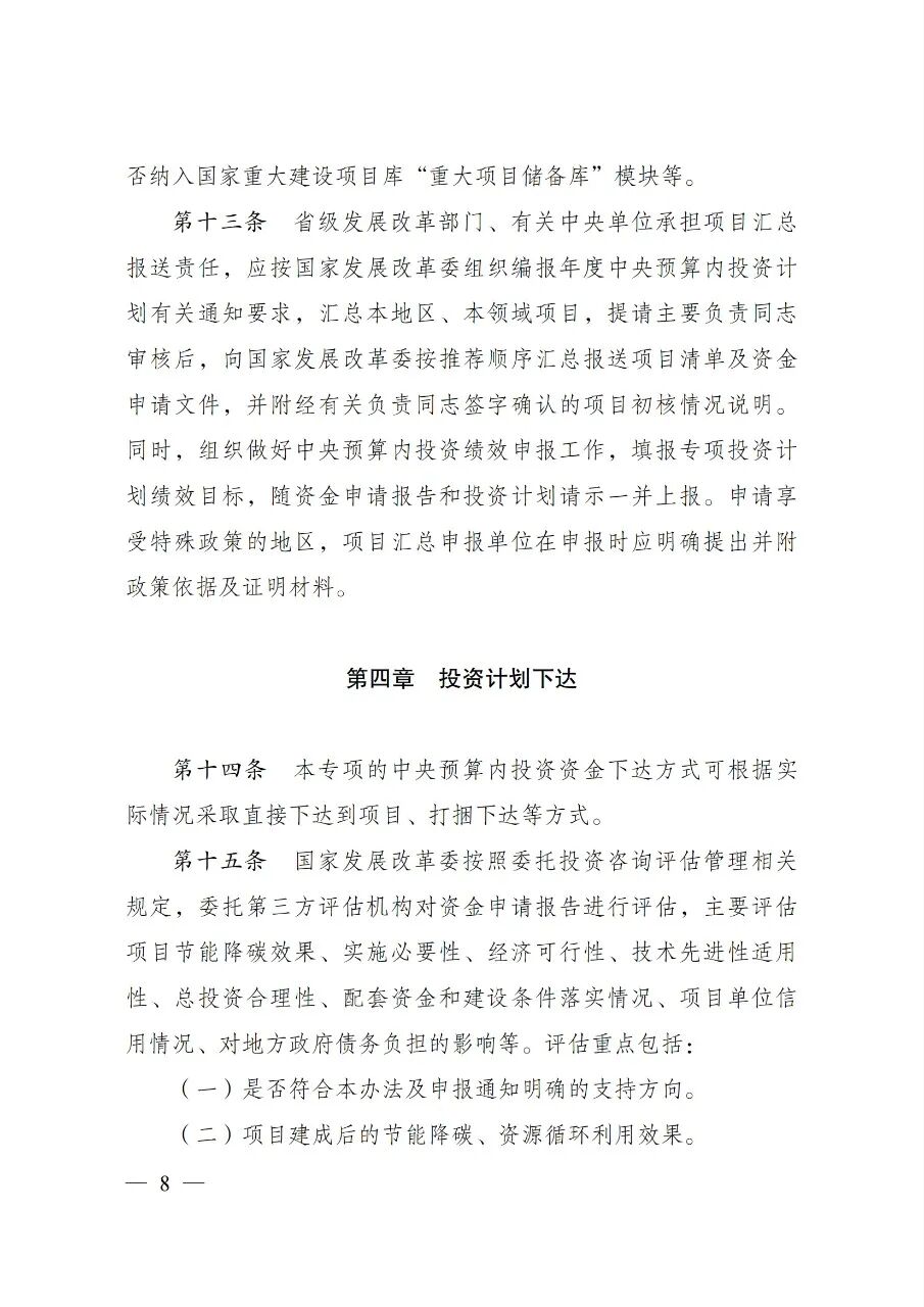 近日,國家發(fā)展改革委印發(fā)《節(jié)能降碳中央預(yù)算內(nèi)投資專項(xiàng)管理辦法》,明確專項(xiàng)資金重點(diǎn)支持范圍和標(biāo)準(zhǔn)。本次專項(xiàng)資金聚焦重點(diǎn)行業(yè)/領(lǐng)域節(jié)能降碳、循環(huán)經(jīng)濟(jì)降碳等核心方向,對碳達(dá)峰碳中和先進(jìn)技術(shù)示范及應(yīng)用項(xiàng)目、重點(diǎn)行業(yè)和重點(diǎn)領(lǐng)域節(jié)能降碳項(xiàng)目、循環(huán)經(jīng)濟(jì)助力降碳項(xiàng)目等實(shí)施差異化資金支持策略:技術(shù)攻堅(jiān)先鋒:列入綠色低碳先進(jìn)技術(shù)示范清單的項(xiàng)目,可獲最高30%總投資額補(bǔ)貼,參照技術(shù)攻關(guān)標(biāo)準(zhǔn)管理示范應(yīng)用主力:其他碳達(dá)峰技術(shù)示范及重點(diǎn)行業(yè)降碳項(xiàng)目,支持比例不超過20%;循環(huán)經(jīng)濟(jì)支柱:循環(huán)經(jīng)濟(jì)降碳項(xiàng)目支持上限為15%;單項(xiàng)目封頂1億元:所有項(xiàng)目支持資金上限嚴(yán)控在1億元以內(nèi),中央及國家機(jī)關(guān)項(xiàng)目直接全額保障。中央和國家機(jī)關(guān)有關(guān)項(xiàng)目原則上全額安排,以精準(zhǔn)資金杠桿撬動綠色轉(zhuǎn)型新動能!