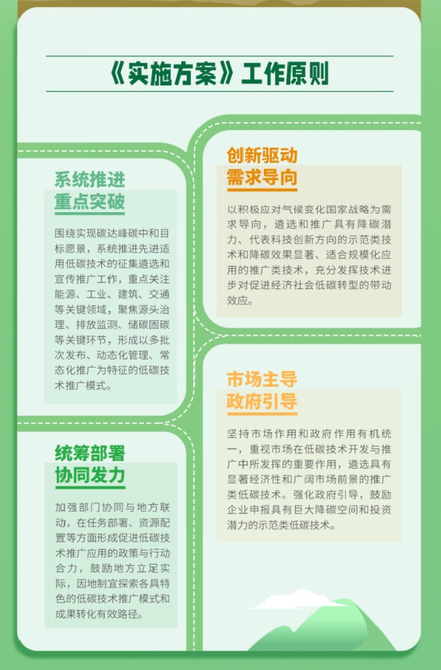 《實施方案》強調(diào)以技術(shù)降碳潛力和降碳效果為目標導(dǎo)向,按照技術(shù)的先進性和成熟度,遴選和推廣具有降碳潛力、代表科技創(chuàng)新方向的示范類技術(shù)和降碳效果顯著、適合規(guī)?;瘧?yīng)用的推廣類技術(shù)。國家重點低碳技術(shù)征集推廣突出企業(yè)在技術(shù)創(chuàng)新應(yīng)用的主體地位,突出市場在技術(shù)推廣和成果轉(zhuǎn)化中的主導(dǎo)作用,鼓勵低碳技術(shù)進園區(qū),探索“企業(yè)-園區(qū)”雙向互動的低碳技術(shù)轉(zhuǎn)化應(yīng)用模式,促進低碳技術(shù)供需雙方對接,拓展低碳技術(shù)推廣應(yīng)用場景。